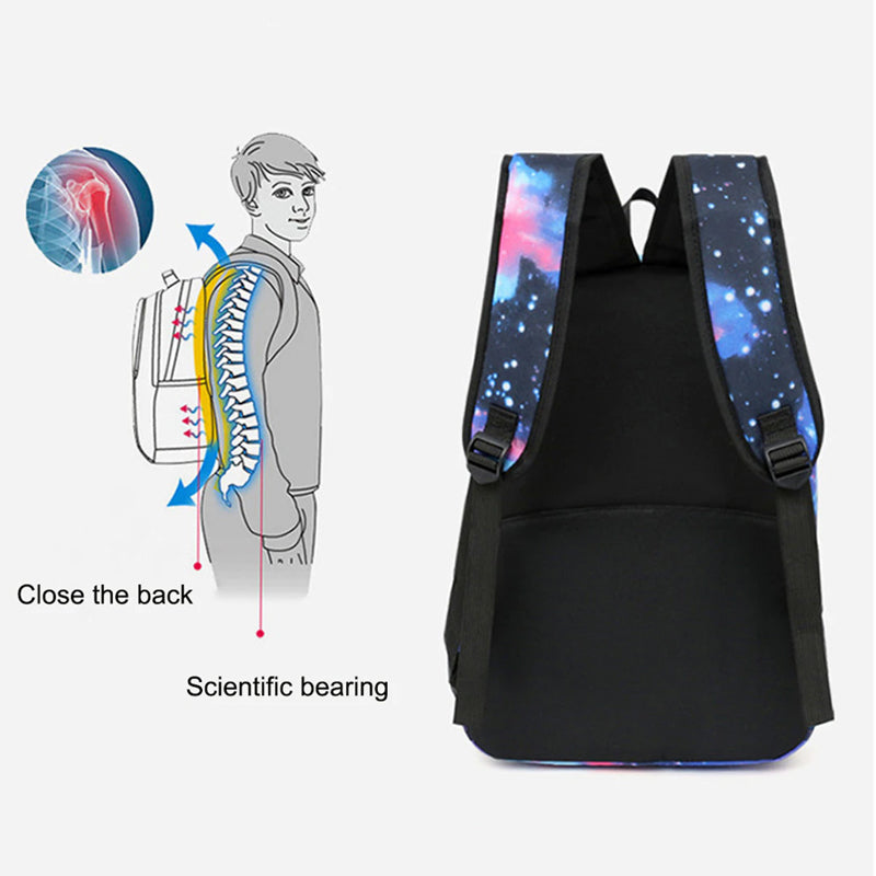 Cute Backpack Students Kid's Schoolbag Shoulder Bag Pen Bag Three Piece Set -Starry Blue