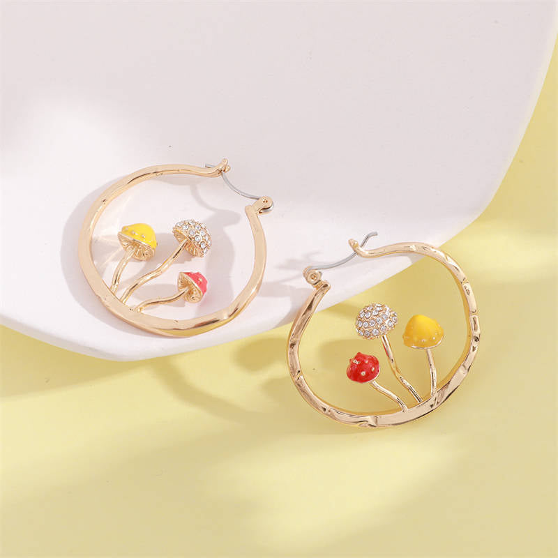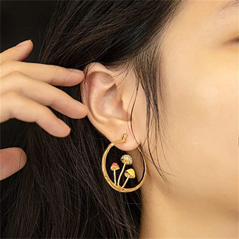 Cute Mushroom Earrings Chunky Gold Hoop Jewellery
