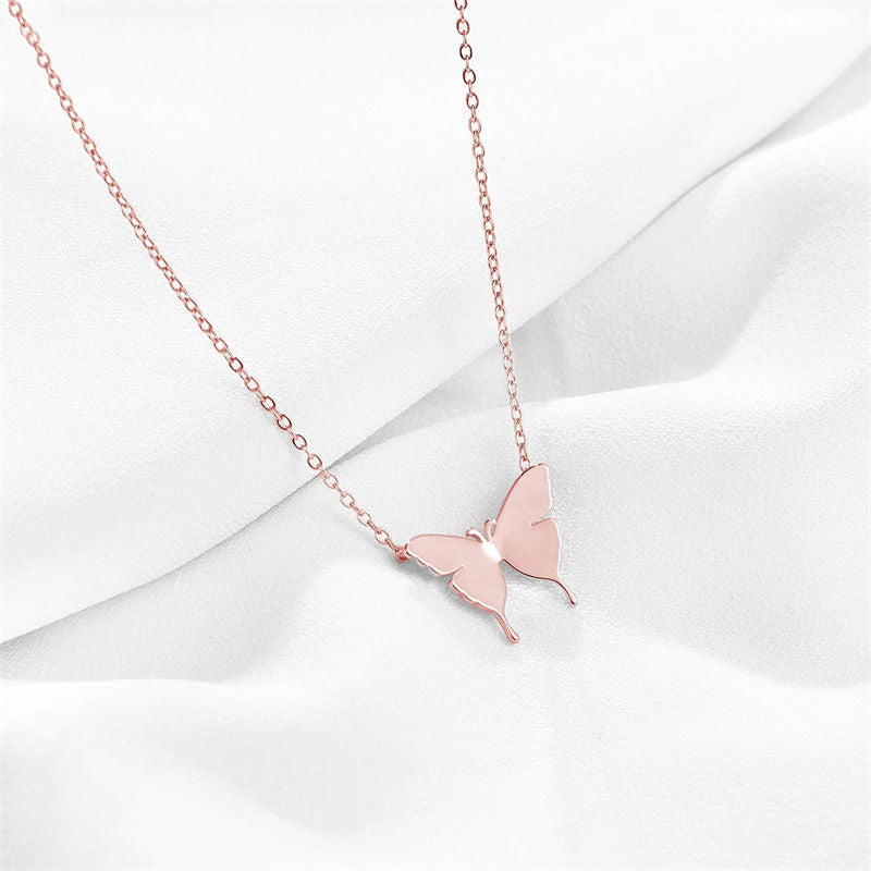 Dainty Butterfly Pendant Necklaces for Women-RoseGold