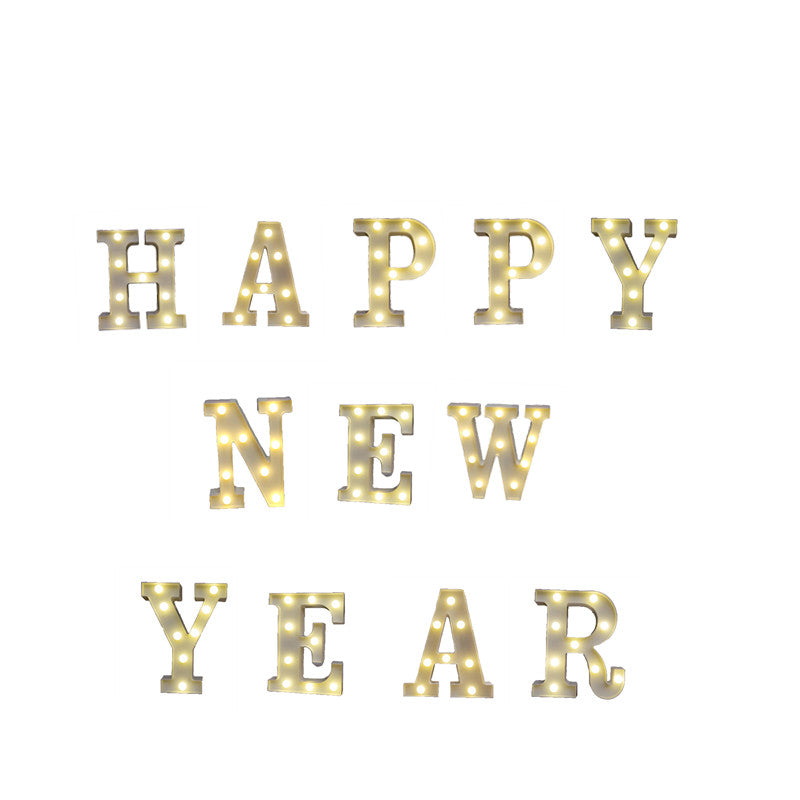 Decorative Led Light Up Number Letters White Plastic Marquee Number Lights Sign Party Wedding Decor Battery Operated (Happynewyear)