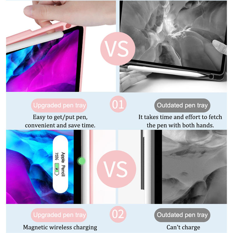- Multiple Protection Case & Built-in Pencil Holder: This keyboard case built-in pencil holder and pen slot on top for easy use and placement. The inner layer of the keyboard case is a honeycomb grid pattern pad that releases more heat than other iPad cases to prevent overheating and extend the life of the iPad. There is a soft silicone inner case to protect your device from drops and scratches.