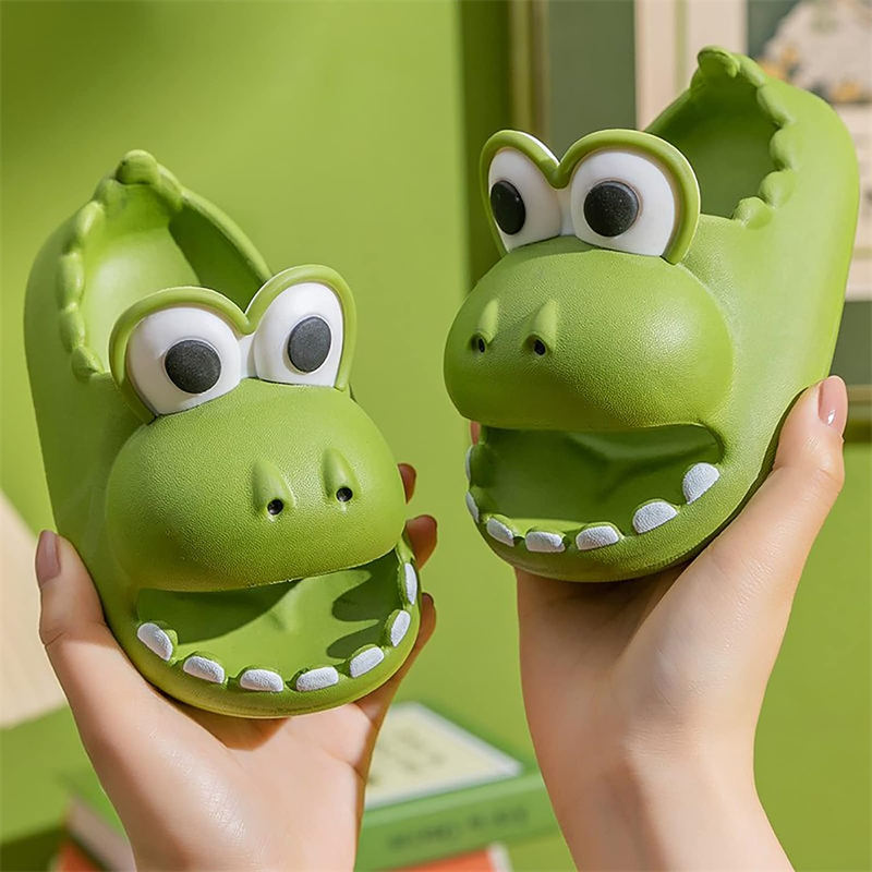 Dinosaur Slippers for Kids Non-slip Cute Big Mouth Water Shoes-Green