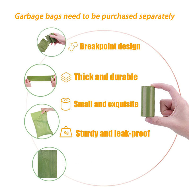 - Flashlight design:each garbage bag dispenser equipped with LED lights and 8 Rolls Waste Bag,keeping you in the dark and easily pick up the dog from,without having to worry about stepping in dog shit.