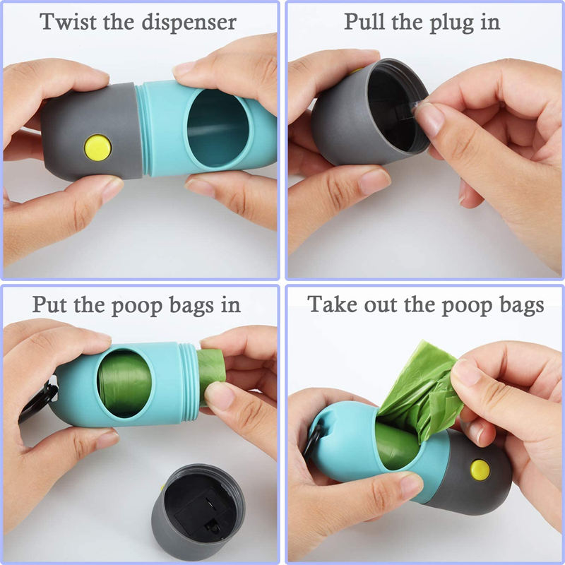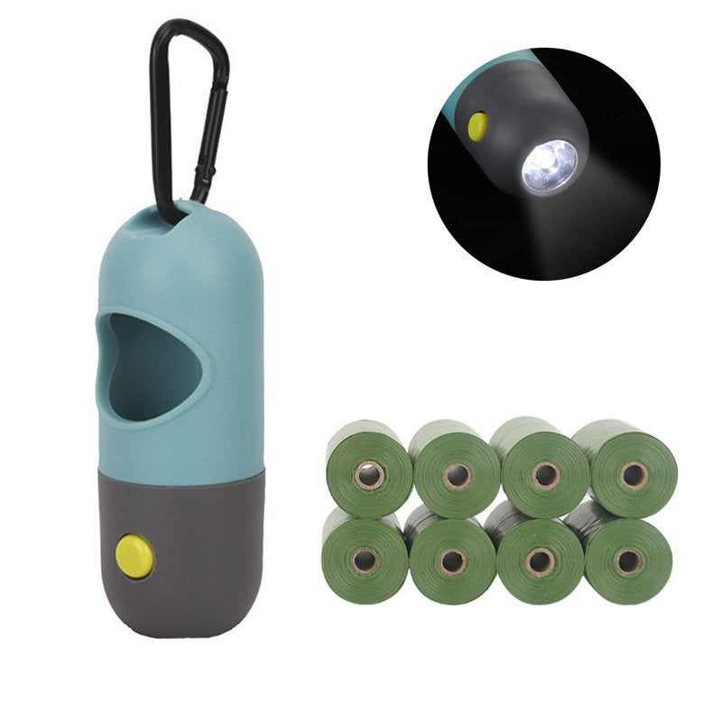 - Flashlight design:each garbage bag dispenser equipped with LED lights and 8 Rolls Waste Bag,keeping you in the dark and easily pick up the dog from,without having to worry about stepping in dog shit.