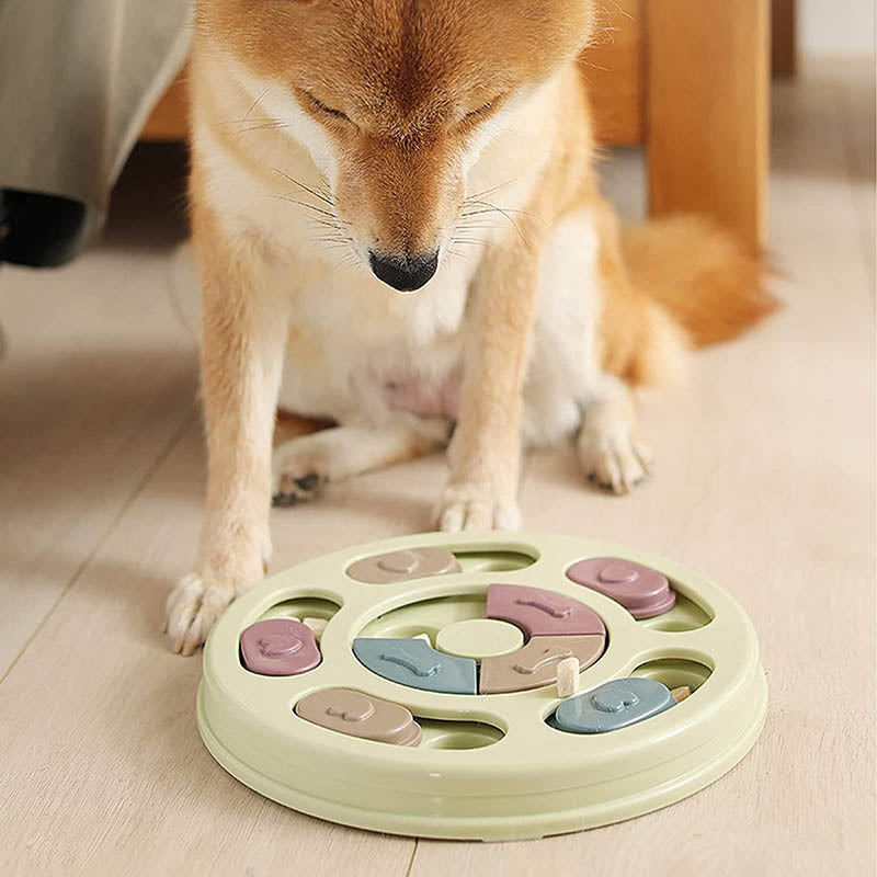 - Slow feeding toys: this puzzle game toy can exercise the dog's brain,which helps satisfy the dog's instinct needs,training pet odors sense,let the dog in the nose or paws move the slider to enjoy the fun of feeding,while providing mental stimulation.