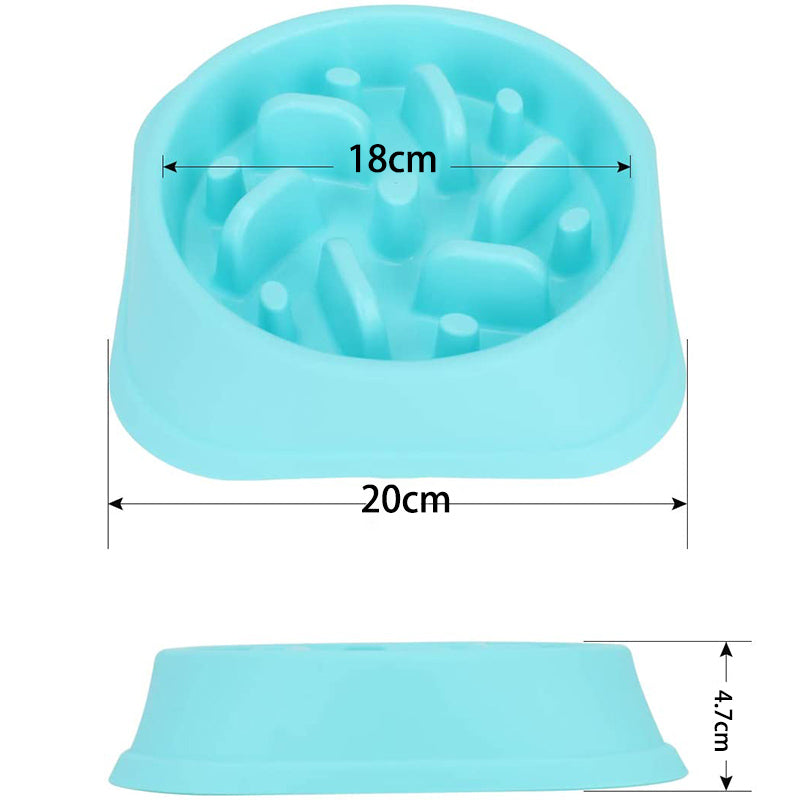 - Size and design:pet slow feeding bowl diameter:Bottom diameter:20cm. Height:4.7 cm. Can accommodate 1 1/2 cups of food. Suitable for medium and small dogs.