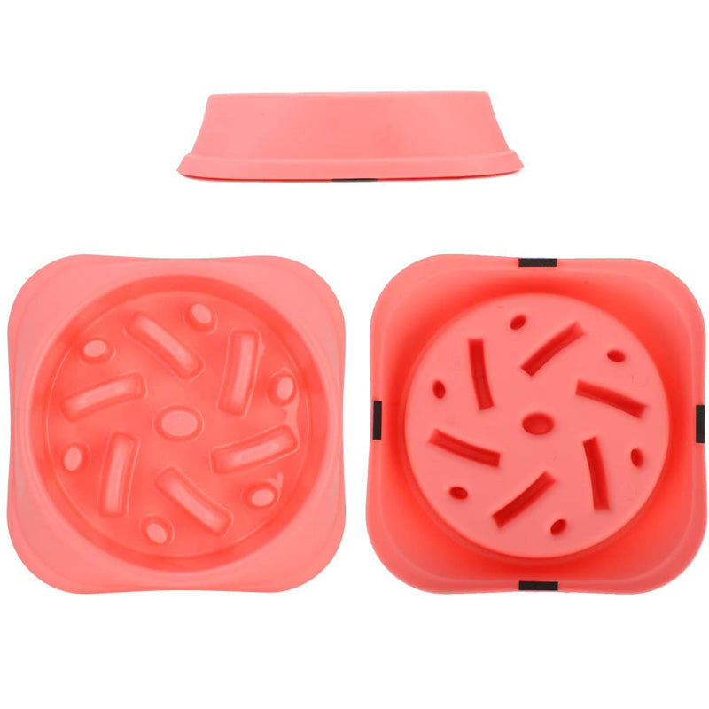 Dog Slow Feeder Non Slip Puzzle Bowl Anti-Gulping Pet Slower Food Feeding Dishes-Pink
