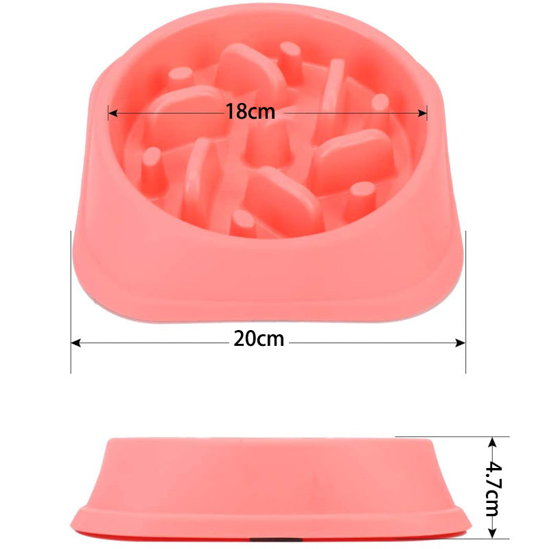 - Size and design:pet slow feeding bowl diameter:Bottom diameter:20cm. Height:4.7 cm. Can accommodate 1 1/2 cups of food. Suitable for medium and small dogs.