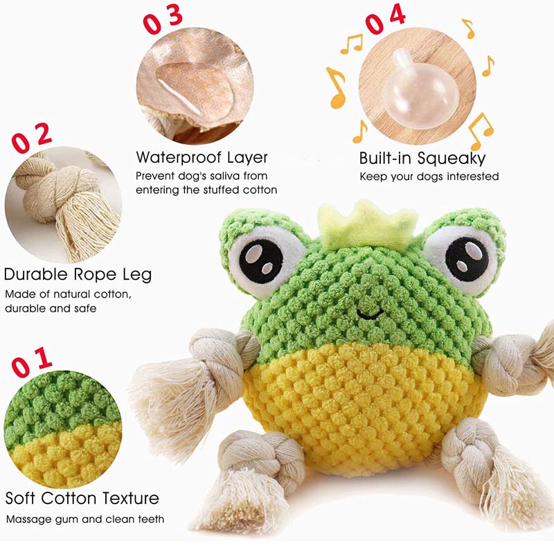 - Couples and entertainment: with the rope squeaky dog toys provide a more fun, relieves boredom for a few hours. These cute toys may also be used to play the dragging war game or pick up the game.