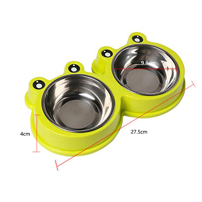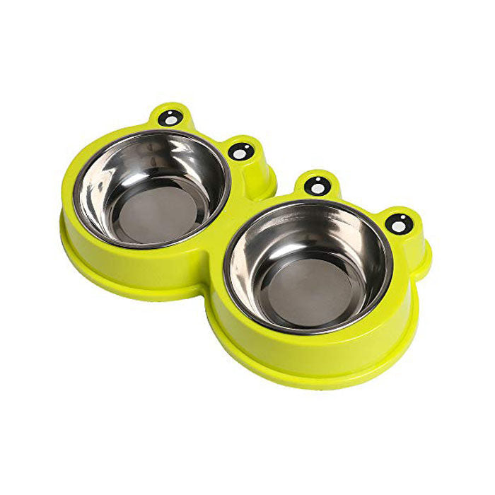 Double Dog Cat Bowls Cute Modeling No-Slip Stainless Steel Pet Bowls-Green