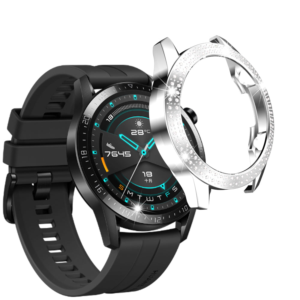 Double Row Diamonds Bling Watch Case For HUAWEI GT/GT2 46MM-Silver