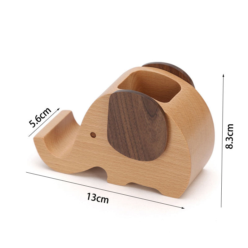 Elephant Wooden Pen Cup Pencil Holder for Desk Decor Desk Organizer with Cell Phone Stand