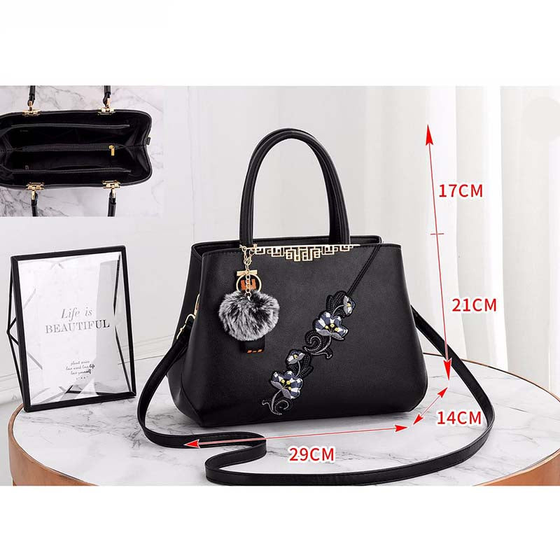 Embroidered Women Top Handle Satchel Fashion Shoulder Bags with Hairball-Purple