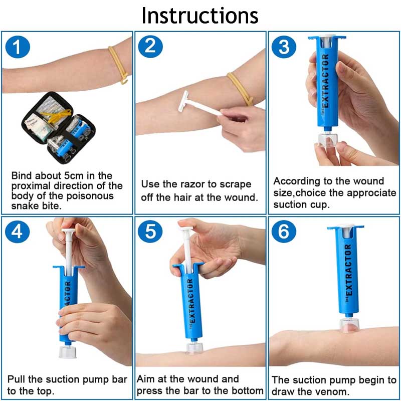 - Venom extractor kit is light,compact and highly portable.The size of the storage box is 14X10X4CM.
