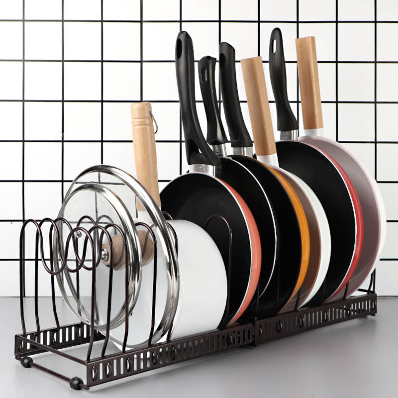 - U-shaped Divider: U-shaped groove design, so that the lid and pot can be placed stably and easy to take. Our extensible pan organizer is equipped with 10 pot rack dividers. You can adjust and install the divider according to the size of the pots and pans or other kitchen utensils at home.