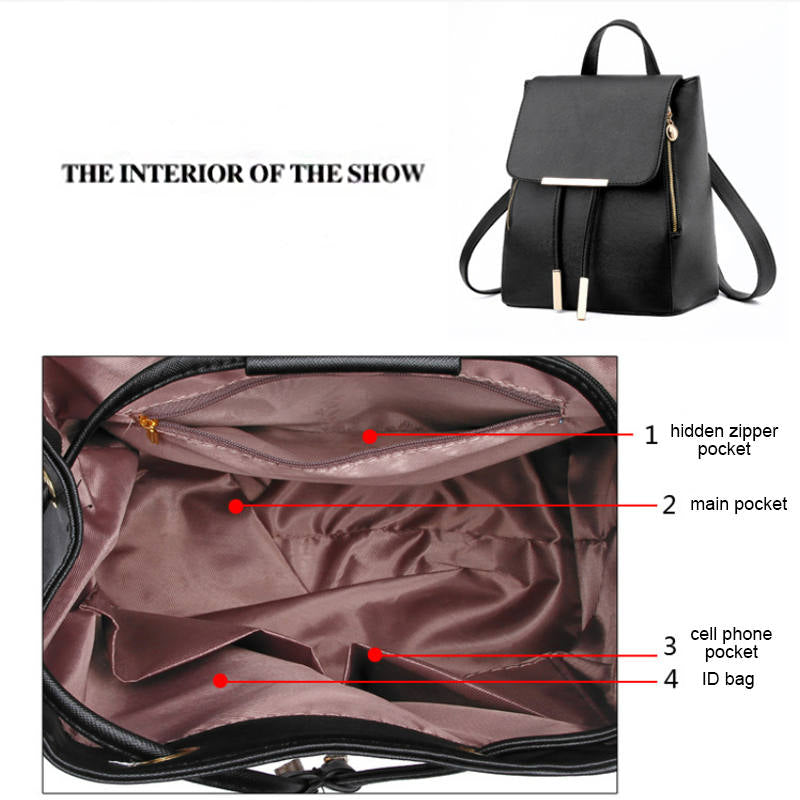 Fashion PU Leather Women Backpack Anti-theft Travel Bag-Black