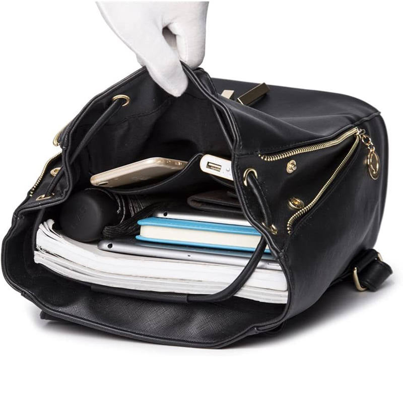 Fashion PU Leather Women Backpack Anti-theft Travel Bag-Feather Black