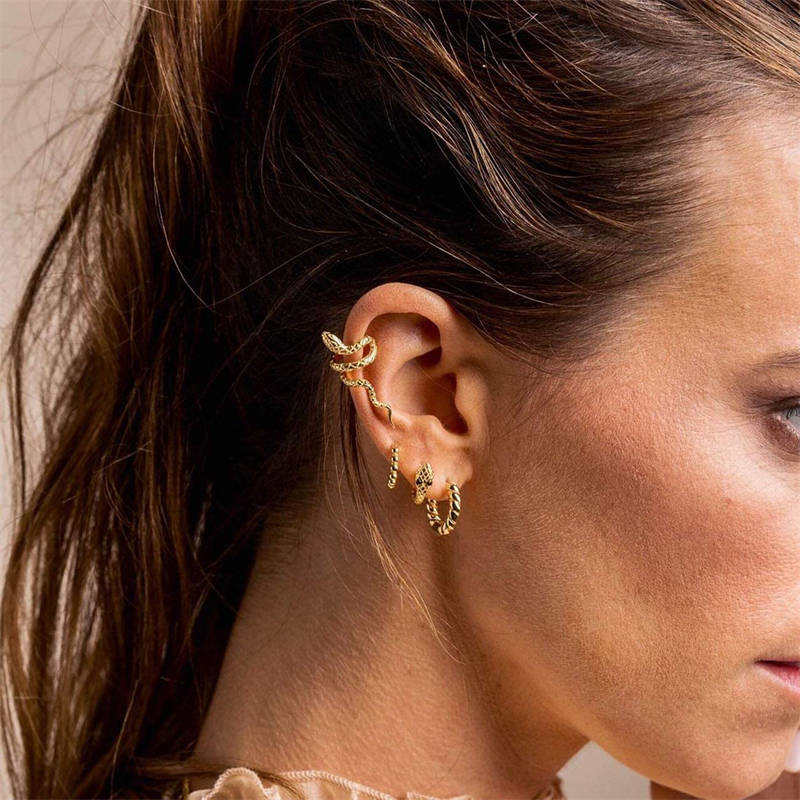 - Classy and lightweight, these snake ear cuffs are great classic huggie that are fashionable accessories for your ears. No piercing needed and comfortably wraps around the cartilage of your ears.