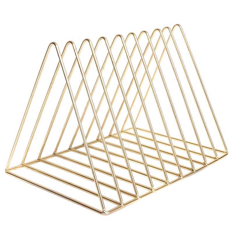 Files Folder Stand Desktop File Organizer Triangle Wire Magazine Holder Book Shelf 9 Slot File Sorter for Indoor Office Home -Gold