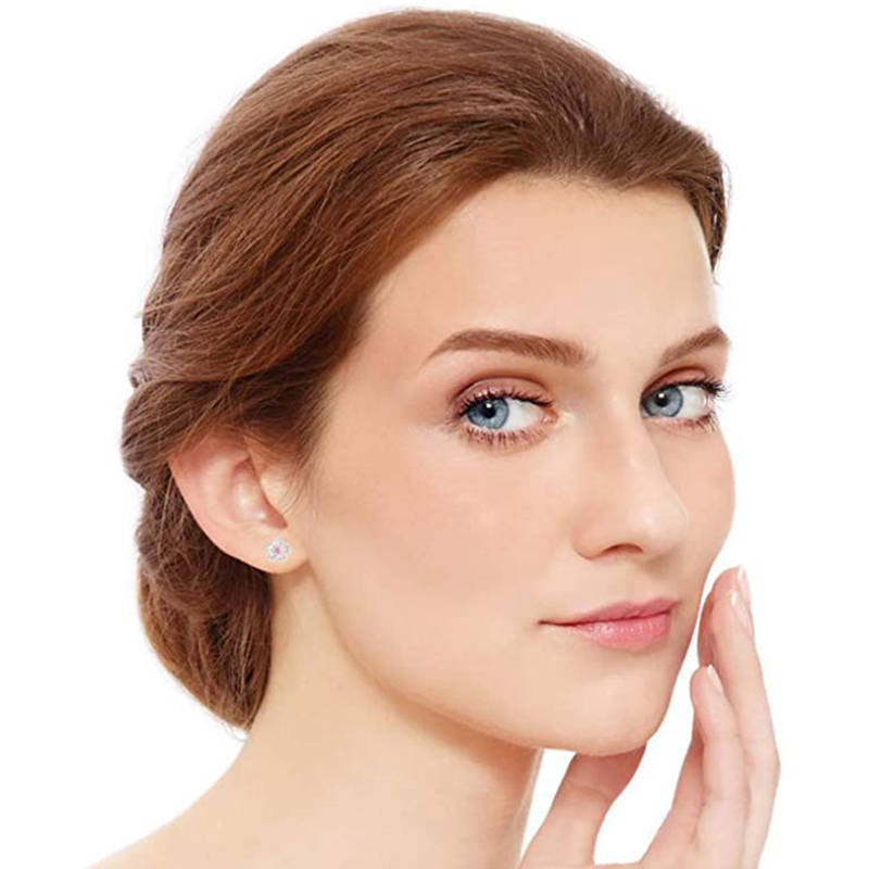 Flower Cubic-zirconia Stud Earrings for Women-Pink