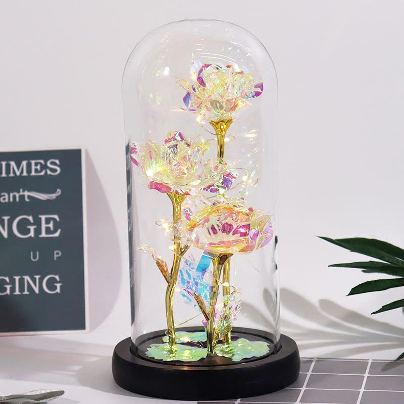 Galaxy Rose Light Glass Dome Romantic Gifts on Valentines Day-WarmLightA