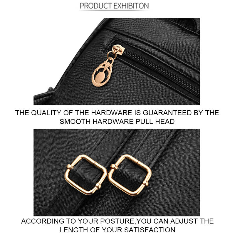 - Structure: Zipper Closure, with adjustable shoulder straps. Multi Pockets: 1 main compartment, 1 front button pocket, 1 zipper back pocket, 2 side pockets; 1 interior phone pocket, 1 interior zipper pocket.