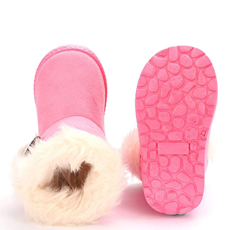 Girl's Boy's Cute Flat Shoes Button Winter Warm Snow Boots-Pink