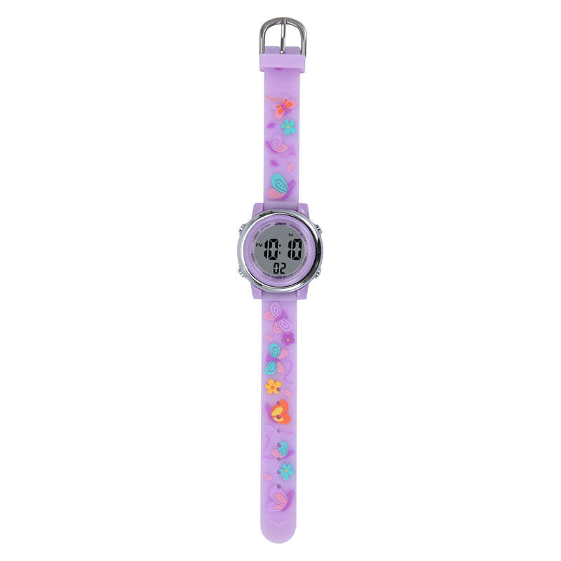 Girls Digital Sport Watches LED with 7 Colors Backlight 3D Butterfly Wristwatch-LightPurple