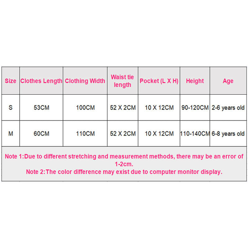 - Size: S is suitable for 2-6 year old baby to wear.M is suitable for babies aged 6-8.(all sizes in our shop are measured manually, 1-2cm errors are within the normal range, please follow the version specific size, because each body type is different, for reference only, I hope you can understand)