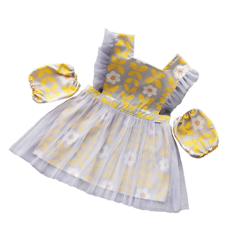 Girls Princess Dress Apron with Sleeves Covers for Cooking Painting-Bright Yellow Flowers
