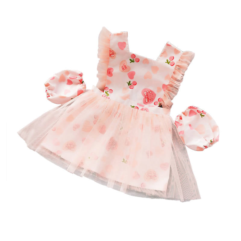 Girls Princess Dress Apron with Sleeves Covers for Cooking Painting-Cherry Heart