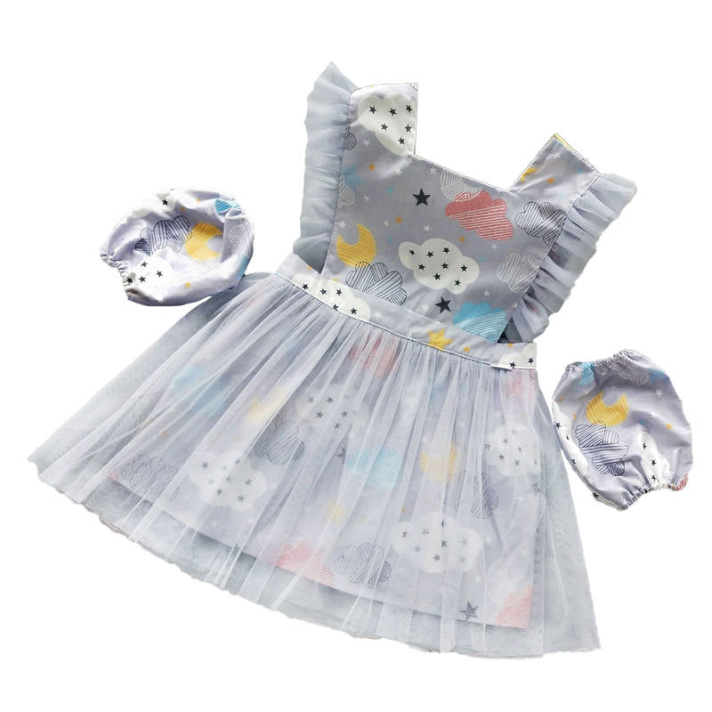 Girls Princess Dress Apron with Sleeves Covers for Cooking Painting-Grey Cloud