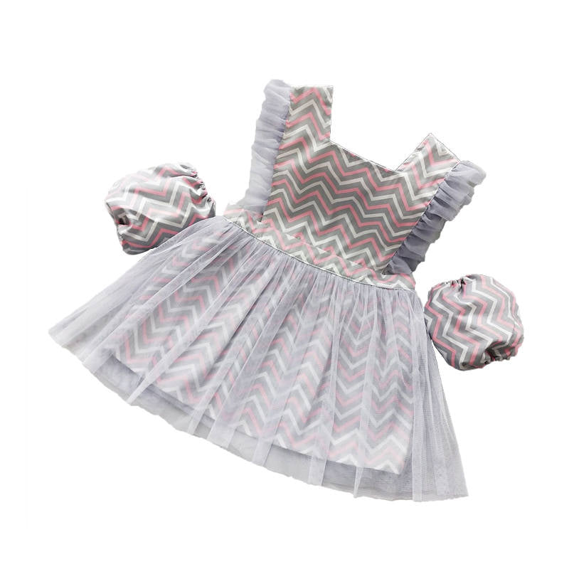 Girls Princess Dress Apron with Sleeves Covers for Cooking Painting-Light Grey Pink Stripes