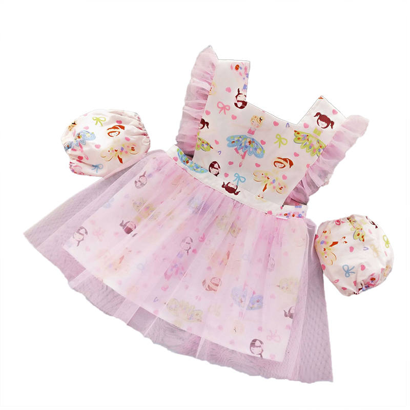 Girls Princess Dress Apron with Sleeves Covers for Cooking Painting-Pink Fairy