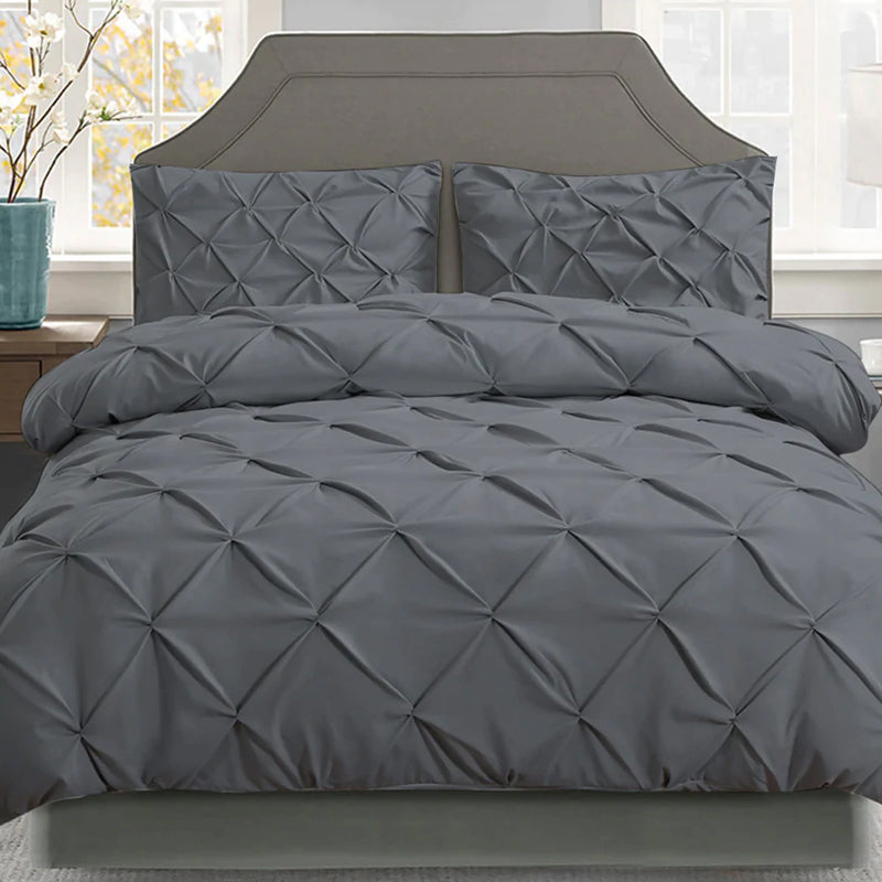 Giselle Bedding Pinch Pleat Diamond Duvet Doona Quilt Cover Set King Charcoal