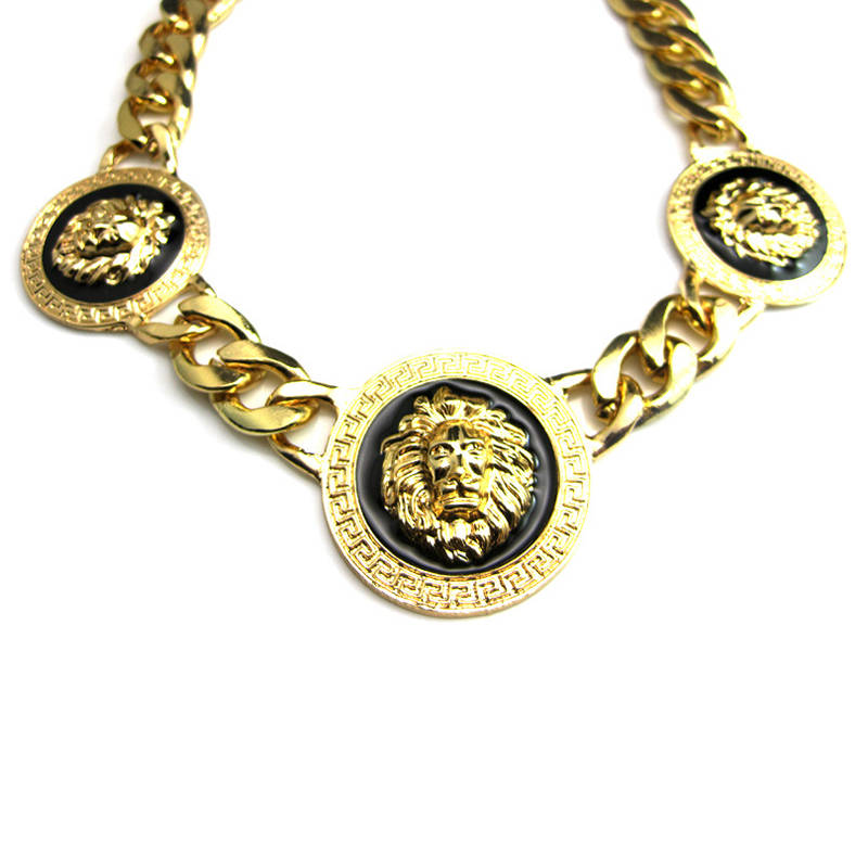 Gold Lion Heads Necklace Hip Hop Statement Chunky Chain