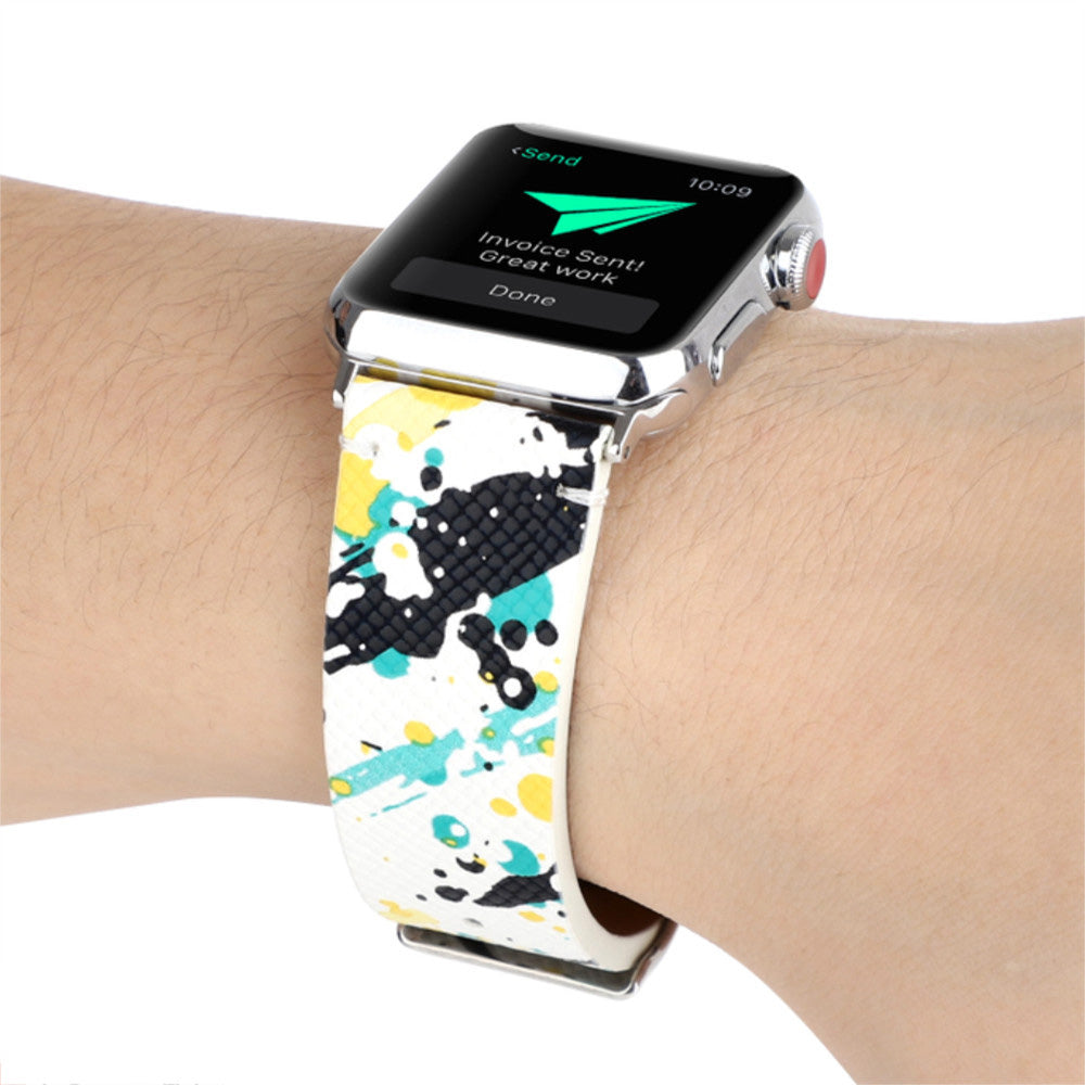 Graffiti Painted PU Leather Watch Band Microfiber Design For Apple Watch SE/6/5/4/3/2/1(Graffiti5)
