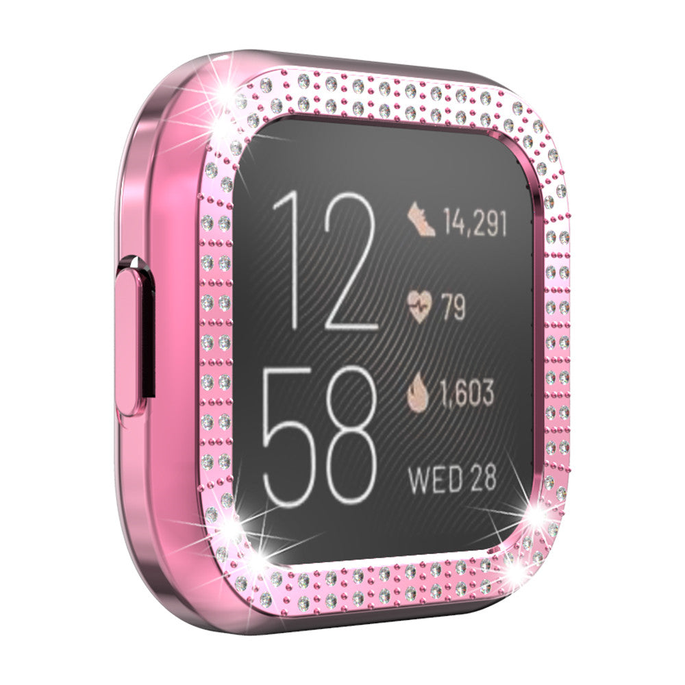 Hard PC Double Diamond Frame Protective Case For Fitbit Versa 2 - Pink