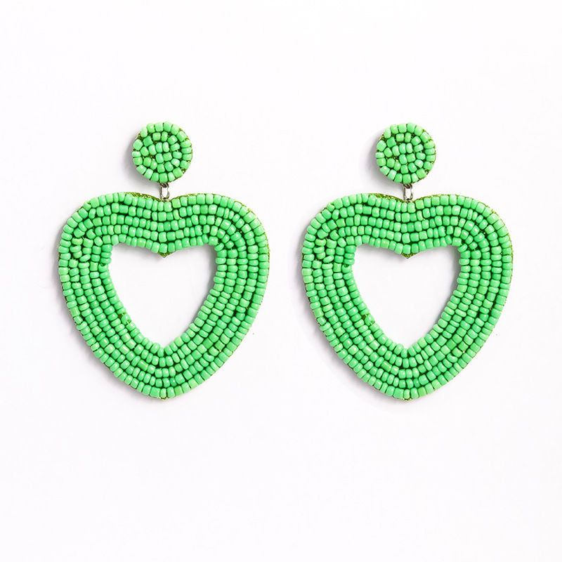 - These heart-shaped beaded earrings are just what your Summer wardrobe needs, a chic but fun design that's perfect for putting the finishing touch to your evening ensembles - for a party-ready look at your next event wear with strappy block heel sandals and a colourful midi dress.