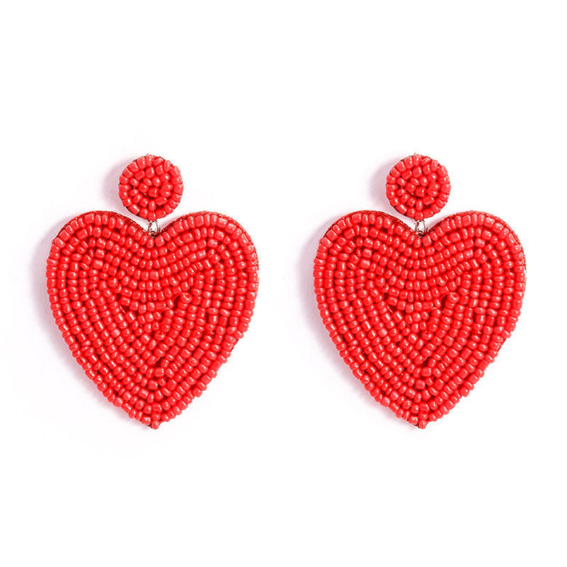 - These heart-shaped beaded earrings are just what your Summer wardrobe needs, a chic but fun design that's perfect for putting the finishing touch to your evening ensembles - for a party-ready look at your next event wear with strappy block heel sandals and a colourful midi dress.
