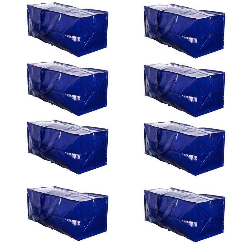 Heavy Duty Extra Large Storage Bags Backpack Straps Strong Handles & Zippers Recycled Material Blue Set of 8