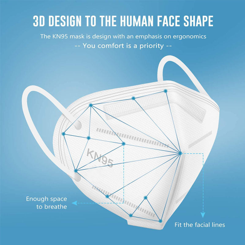 - Adjustable nose clip can help the mask perfectly attach onto your face.The four sides join tightly to the face; Hence, the protective mask KN95 avoids unfiltered air directly entering into.