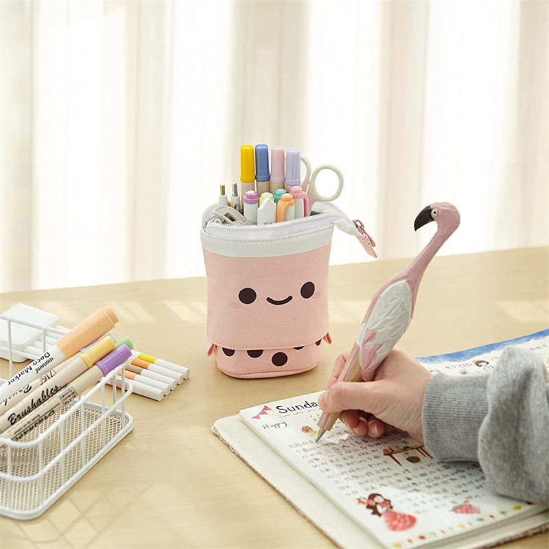- Easy to Adjustment: The top can be pull up or slid down to adjust the height of the pencil bag, Pull the pouch up and down to transfer it. It also has small pockets in it, and can used as a purse, stand-up portable Telescopic bag. Size: 10 cm X 10 cm X 18 cm.