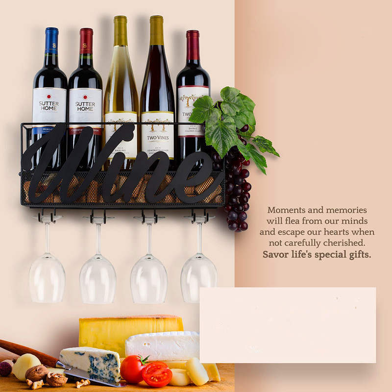 - Beautiful Wine Lover¡¯s Gift£ºThis wall-mountable red wine holder also makes a smart choice thanks to the four built-in wine glass holders and extra cork tray.