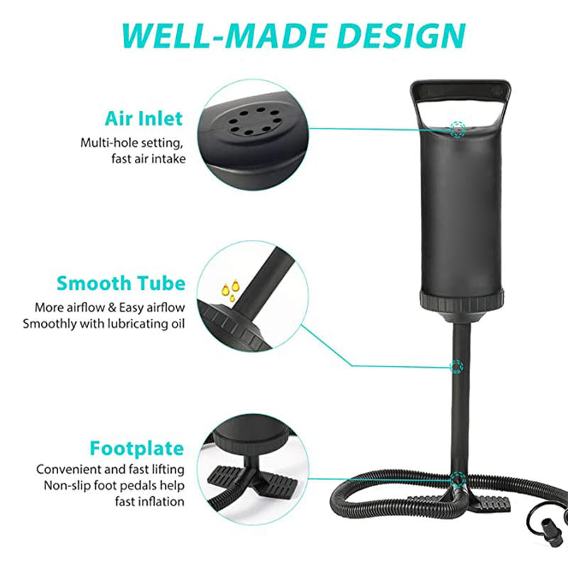 - This big, hi-volume inflation pump includes an accordian air hose with 3 interconnecting nozzles to fit small, medium and large diameter inflation valves as well as needle valves.