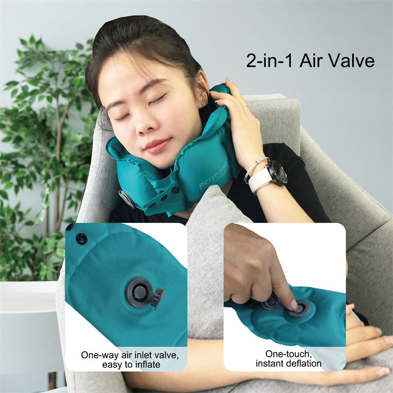 - Adjustable Inflation for Custom Support: Easily inflate the travel pillow in just 2 senconds with the innovative valve. Adjust the firmness to your liking for the best neck pillow for sleeping. This feature ensures maximum comfort during long flights, making it a must-have for airplane travel essentials and international travel must-haves.