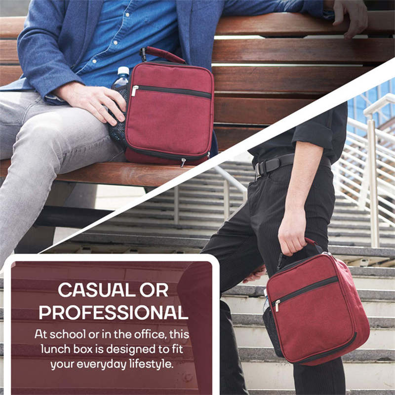Insulated Lunch Bag Tough Reusable Adult Lunchbox With Water Bottle Holder -Gray