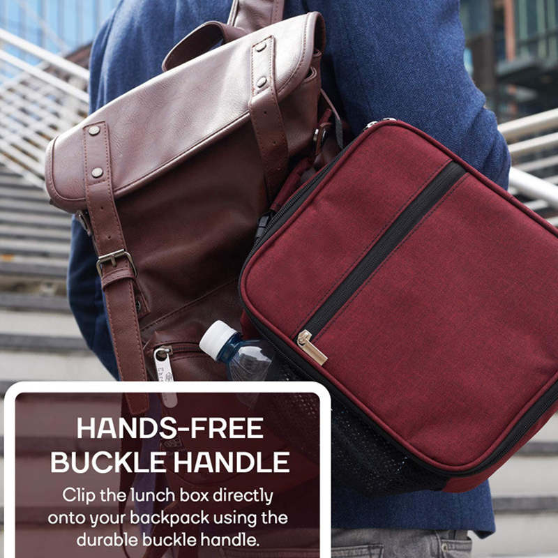 - A STRONG FIT FOR THE ON-THE-GO PROFESSIONAL OR ADVENTURER - Be unstoppable with a highly functional lunch box that comes equipped with a detachable buckle handle which will always look great tied to your backpack or along side a briefcase. The insulated lunch bag is compact enough to fit inside a backpack, gym bag, or travel bag to keep up with your on-the-go lifestyle.