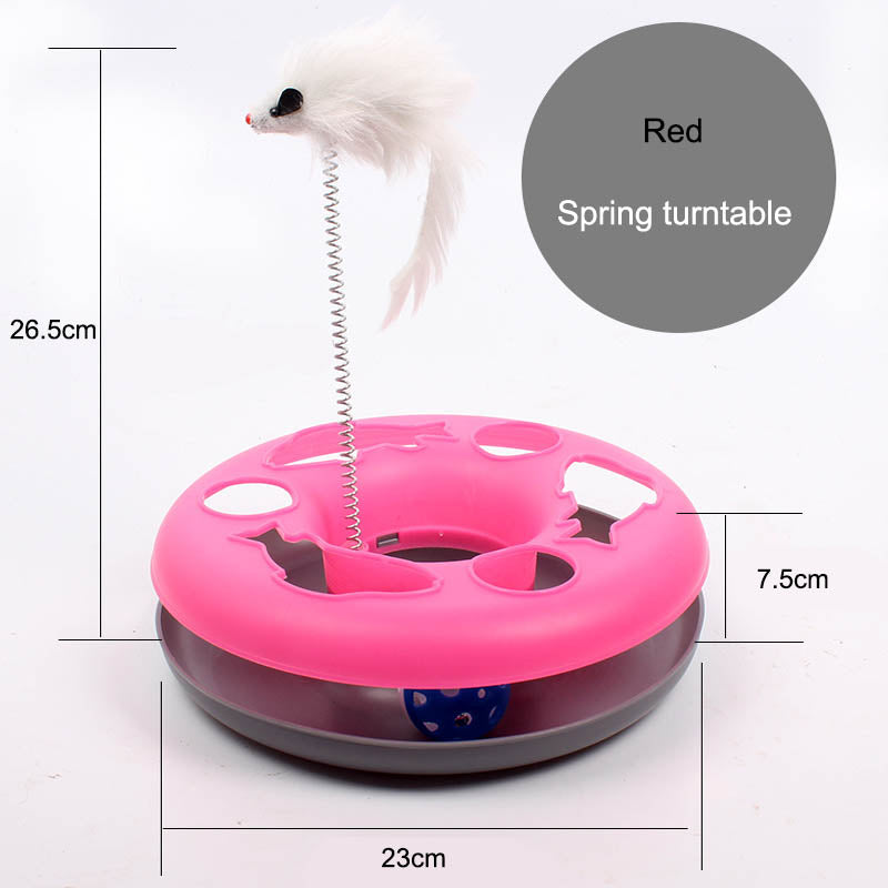 Interactive Cat Toy Scratching Spring Mouse Turntable with Exercise Bell Balls-Rose red