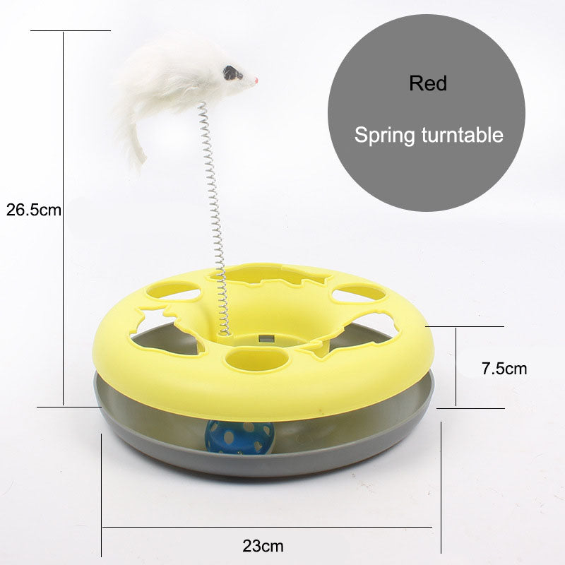 Interactive Cat Toy Scratching Spring Mouse Turntable with Exercise Bell Balls-Yellow